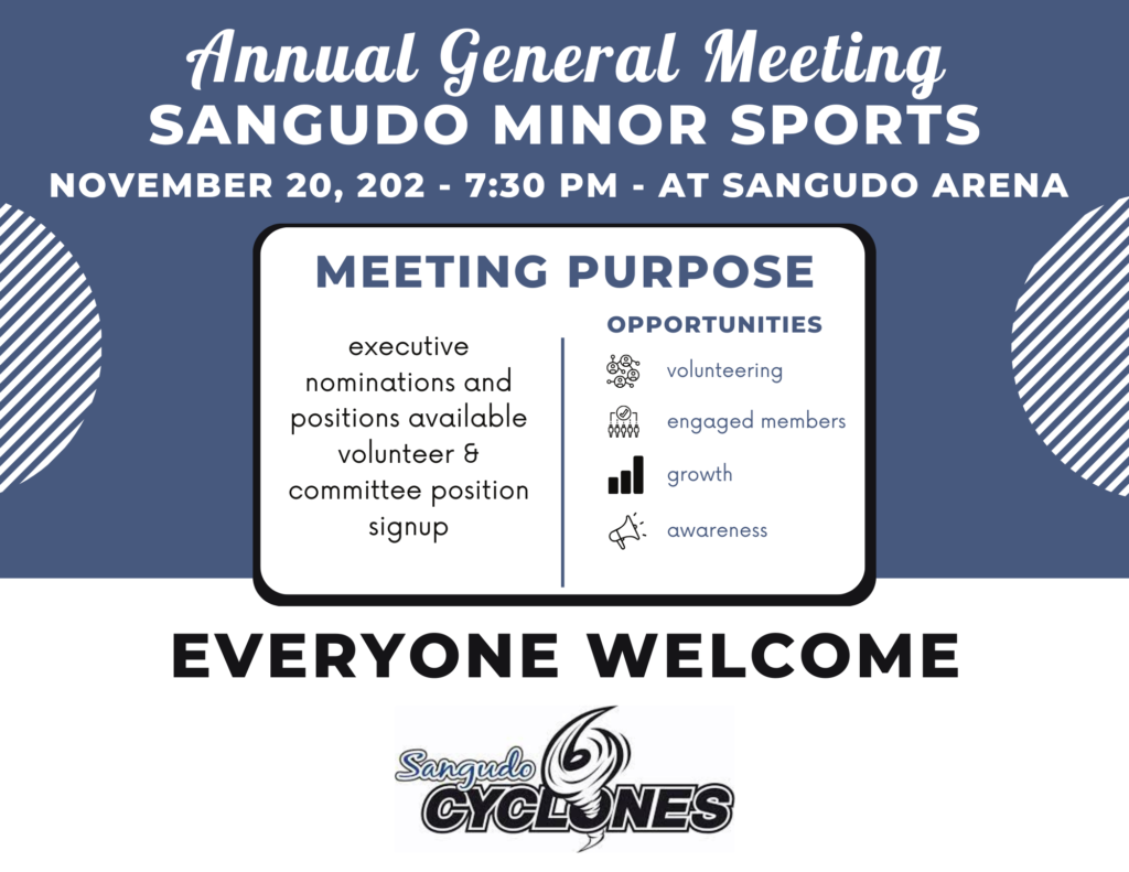 Sangudo Minor Sports hosts their Annual General Meeting every November.